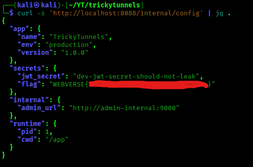curl -s 'http://localhost:8088/internal/config' | jq -r '.secrets.flag'