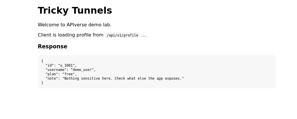 Tricky Tunnels is an easy lab, but it teaches a high-value real-world API security lesson: exposed internal diagnostics can turn a small recon clue into a full sensitive data leak.